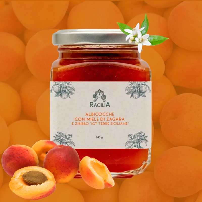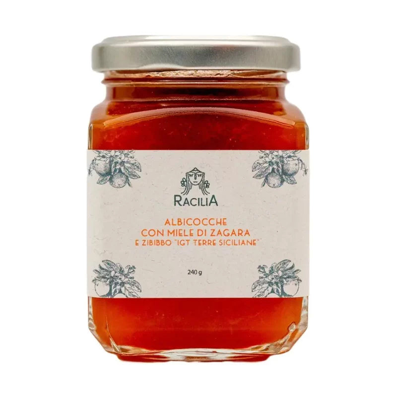 La confiture d'abricots au miel de fleur d'oranger et au zibibbo « IGT Terre Siciliane » a une saveur unique et inimitable, et est sans gluten . La douceur et les notes aromatiques de la liqueur font de cette confiture non seulement un simple ingrédient pour rehausser vos plats, mais aussi un véritable dessert à déguster seul.