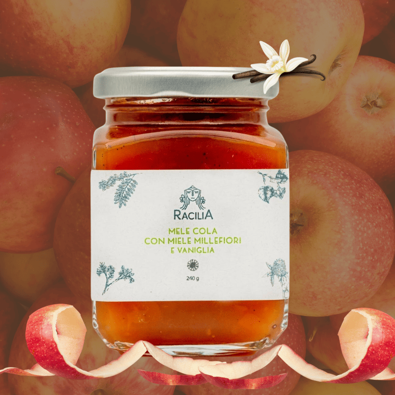 Une alliance de saveurs délicates et intenses : notre confiture de pommes Cola au miel de fleurs sauvages et à la vanille est un véritable délice sicilien. Fabriquée à partir de pommes Cola rares, une Sentinelle Slow Food, cultivées sur l'Etna, cette confiture sans gluten allie la douceur naturelle du miel de fleurs sauvages 100 % sicilien au parfum enveloppant de la vanille. Résultat : une confiture raffinée et authentique, parfaite à tartiner sur du pain, pour accompagner des fromages affinés ou pour sublimer des desserts.