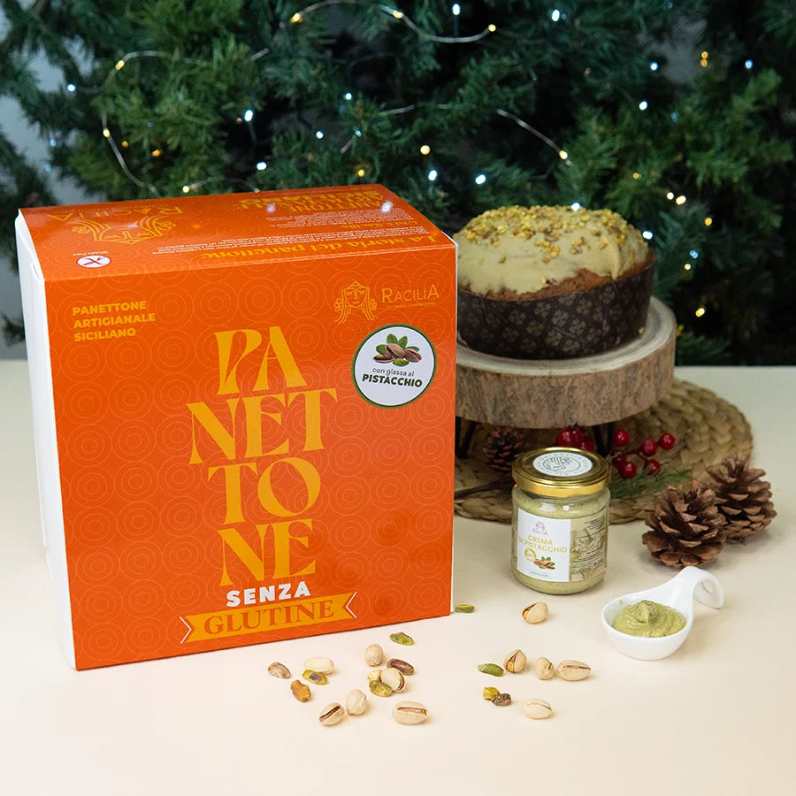 Panettone Artigianale Senza Glutine al Pistacchio + 200g di Crema al Pistacchio