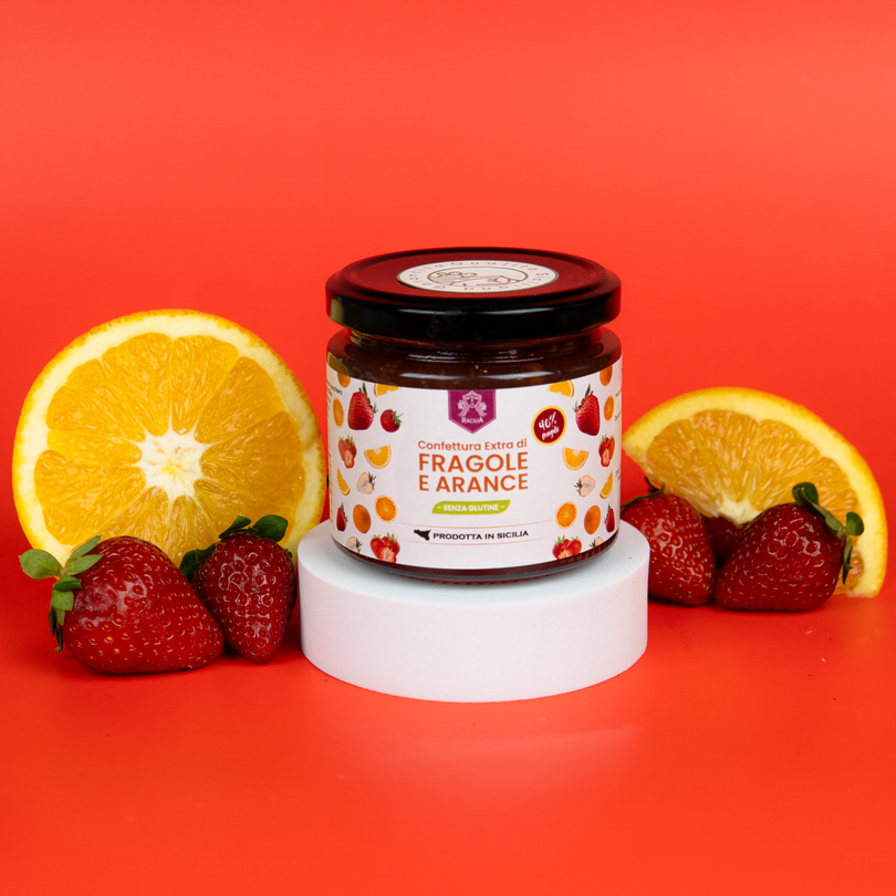 La douce saveur des fraises s'allie à la vivacité des oranges de Sicile dans une confiture au profil aromatique et enveloppant. Sans gluten , elle est idéale pour agrémenter le petit-déjeuner, accompagner les fromages frais ou apporter une touche originale aux desserts.