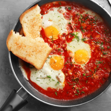 Un piatto tradizionale e ricco di carattere: uova fresche cotte lentamente nella passata, per un risultato cremoso e avvolgente.