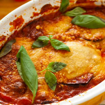 Strati avvolgenti di melanzana e mozzarella, dove la passata lega e valorizza ogni ingrediente con gusto intenso.