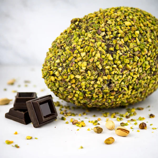 Il nostro Uovo di Pasqua fondente pralinato con pistacchi interi, realizzato 100% artigianalmente in Sicilia: cioccolato fondente intenso, pralinatura croccante con pistacchi interi che esplodono a ogni morso. Un equilibrio perfetto per un gusto premium.